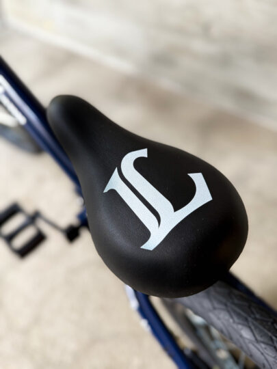 遠くからでもわかるサドルの「 L 」のイニシャル